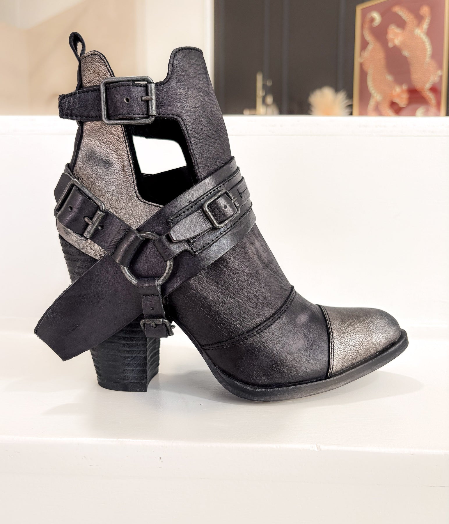 leather upper with distressed finish