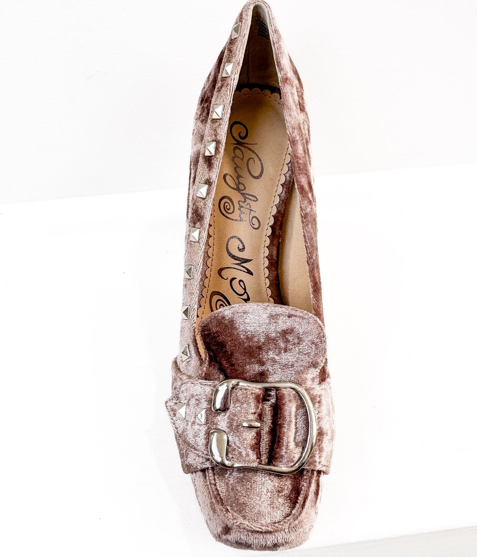 Meet the heel that knows exactly how to make an entrance. The Smooth Talk heel by Naughty Monkey wraps your foot in a dreamy, low-pile mauve velvet that feels as luxe as it looks. Every detail is intentional — from the authentic leather lining to the softly padded footbed that keeps you grounded (even when you're four inches taller).